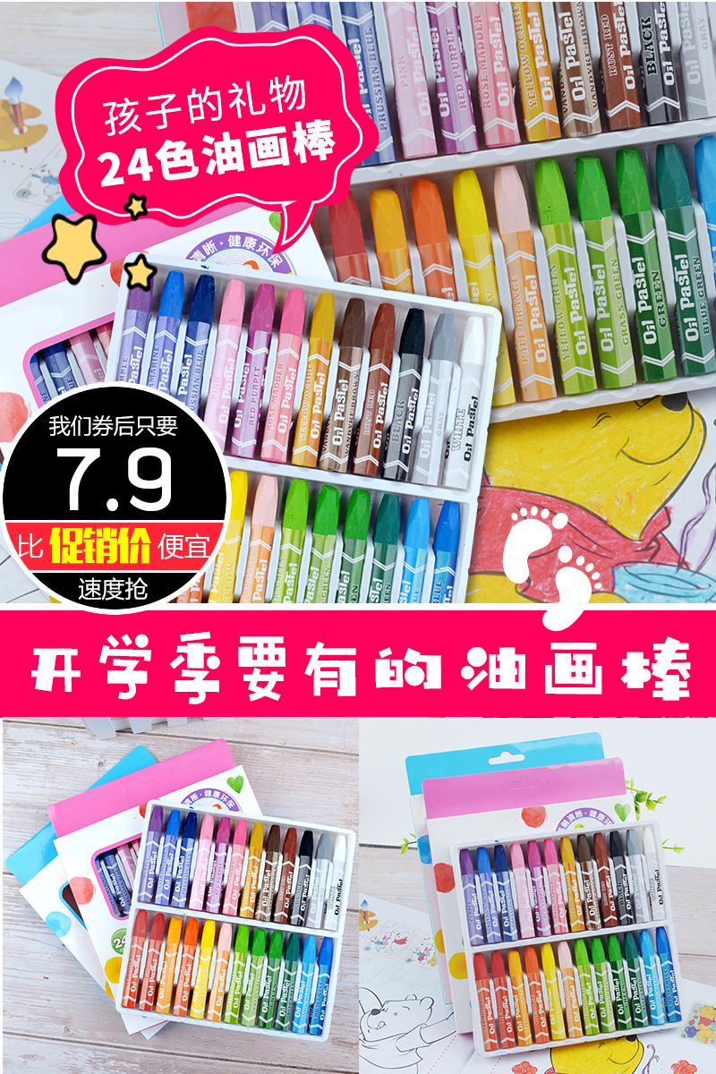 【券后价:7.9元】 【烈儿推荐】24油画棒宝宝蜡笔 - 满帆办公用品专营店